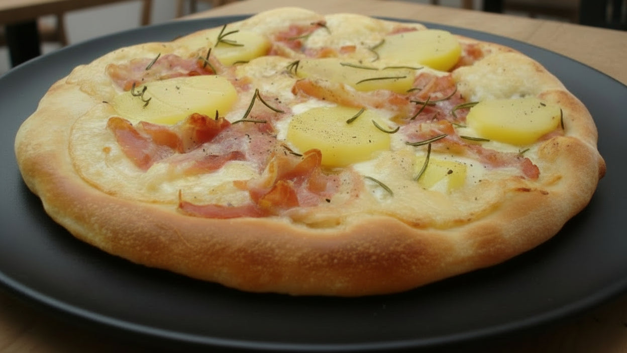 WHITE PIZZA BAKED POTATOES AND PANCETTA (pork)